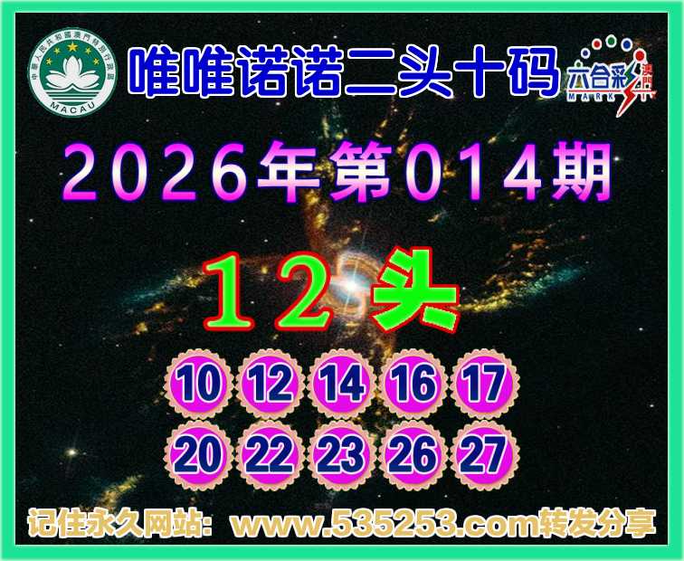 014期:【唯唯诺诺】 👈 二头十码 👈【12头】开:26